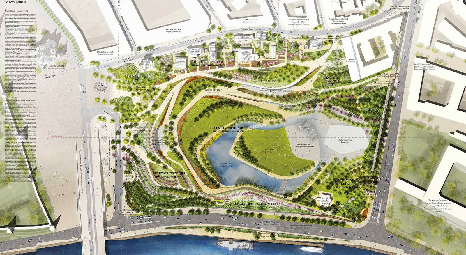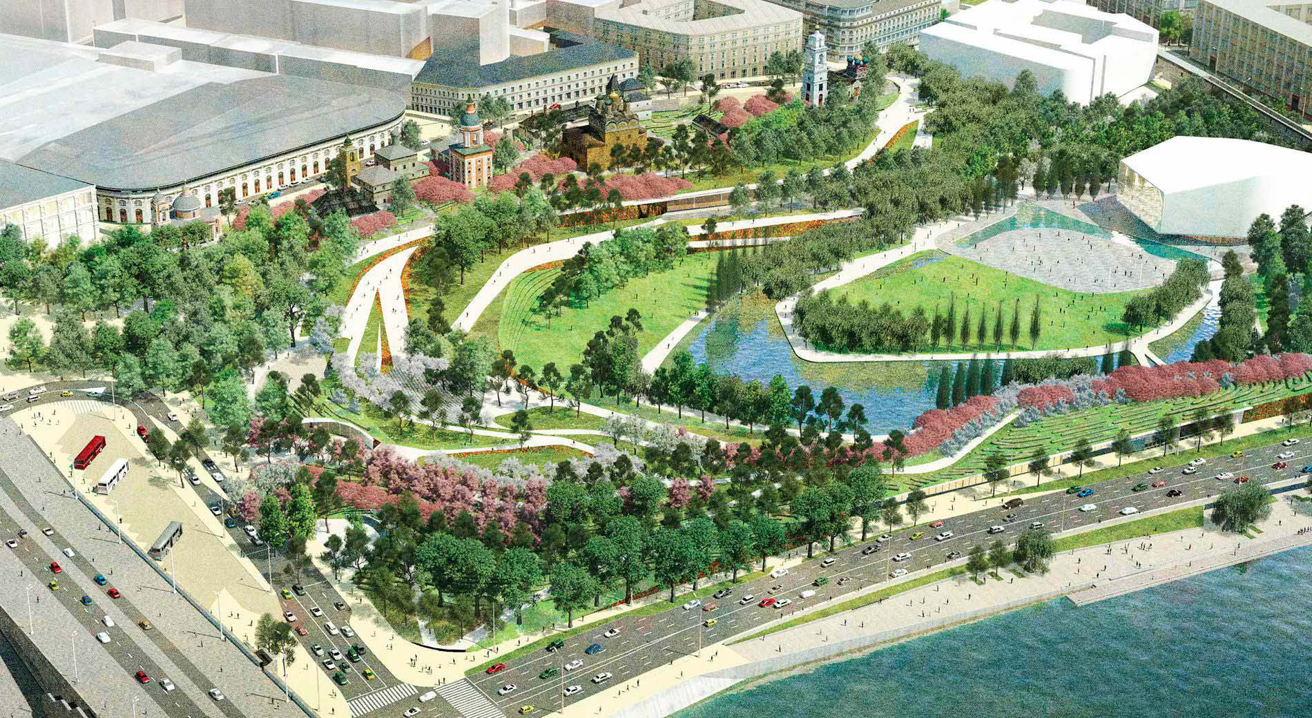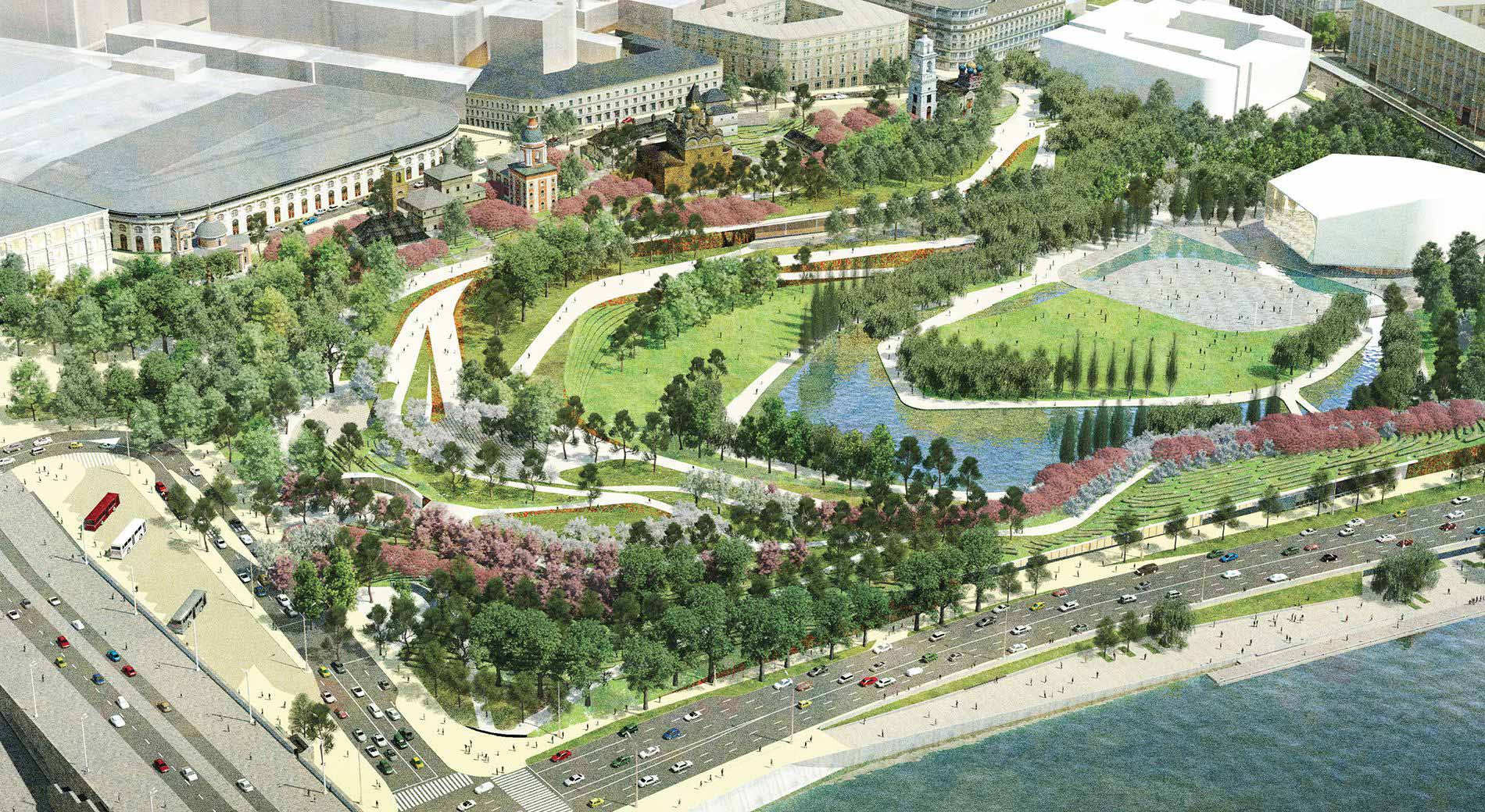 WILD URBANISM. Prenderanno il via alla fine dei 2014 i lavori per la riqualificazione di una zona di Mosca da anni abbandonata. L’area diventerà il parco Zaryadye. È dal 1958 che nella capitale russa non sorge una nuova area verde. Per l’occasione è stato indetto un concorso da cui è uscito vincitore lo studio Diller Scofidio + Renfro. Alla base del progetto la filosofia del Wild Urbanism, ovvero l’integrazione massima tra città e natura. Il nuovo parco sarà, secondo l’intento dei vincitori, una sorta di collage di vari elementi sovrapposti al paesaggio esistente, in modo da produrre una composizione armonica tra architettura e paesaggio.