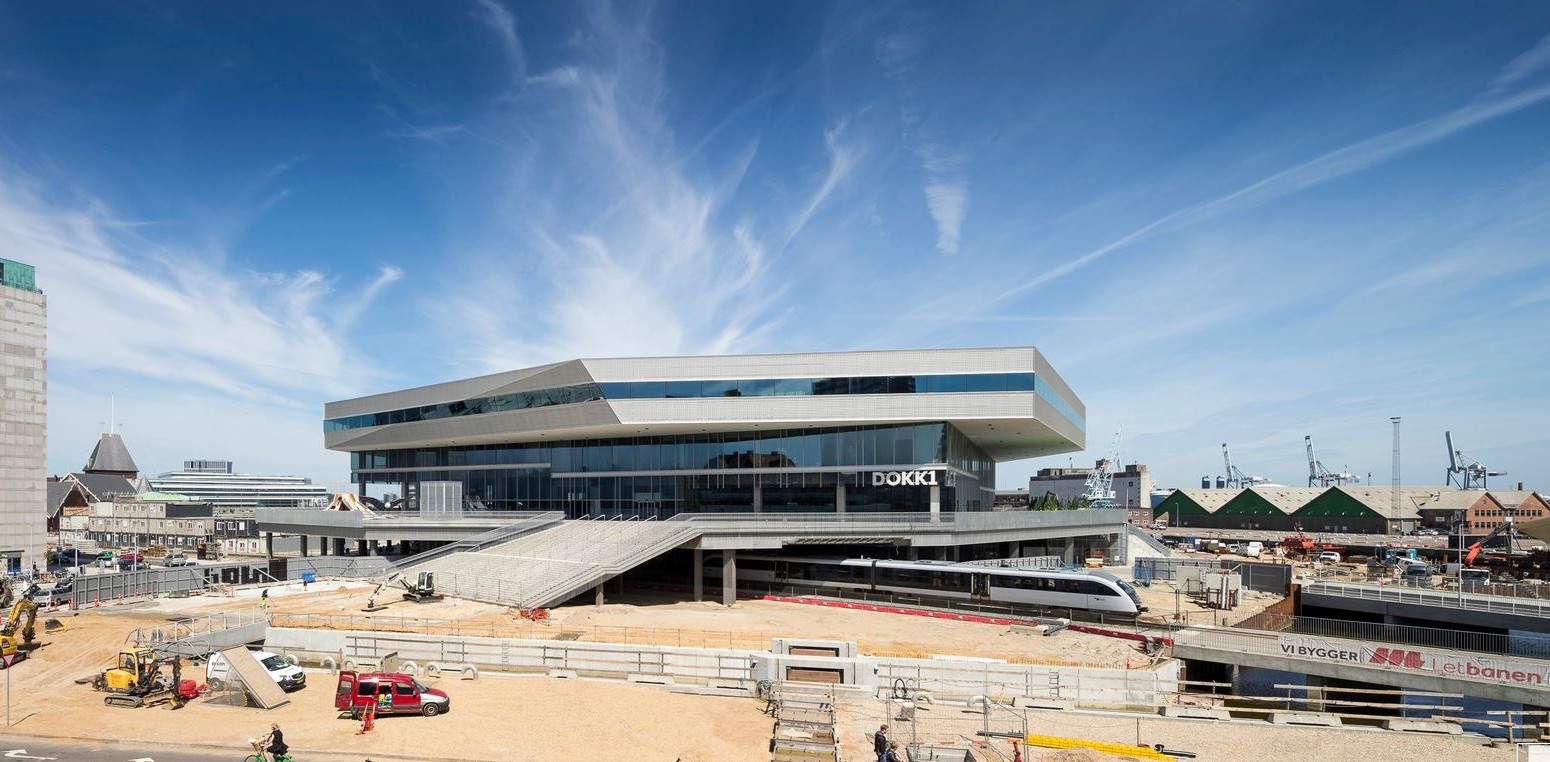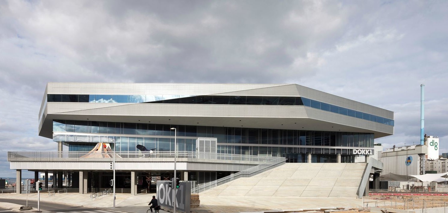 LA BIBLIOTECA INTEGRATA NEL PAESAGGIO. Secondo Kim Holst Jen-sen uno dei fondatori dello studio: «Dokk1 non è semplicemente un edificio, ma un luogo per lo scambio di conoscenze e opportunità, un punto d’incontro multiculturale che cambierà la percezione dell’intera città da parte delle persone. Dokk1 migliora l’ambiente con un’architettura che crea un collegamento visivo eccezionale per la città – sia all’interno dell’edificio che fuori». La biblioteca è facilmente raggiungibile in bicicletta poiché si trova al centro di una rete di trasporti green. Inoltre è stata data al pubblico la possibilità di fare una passeggiata panoramica, godendo della vista sul porto di Aarhus. «L’interno di Dokk1 incoraggia alla collaborazione attraverso la struttura aperta e le connessioni visive tra le diverse zone funzionali e l’esterno».