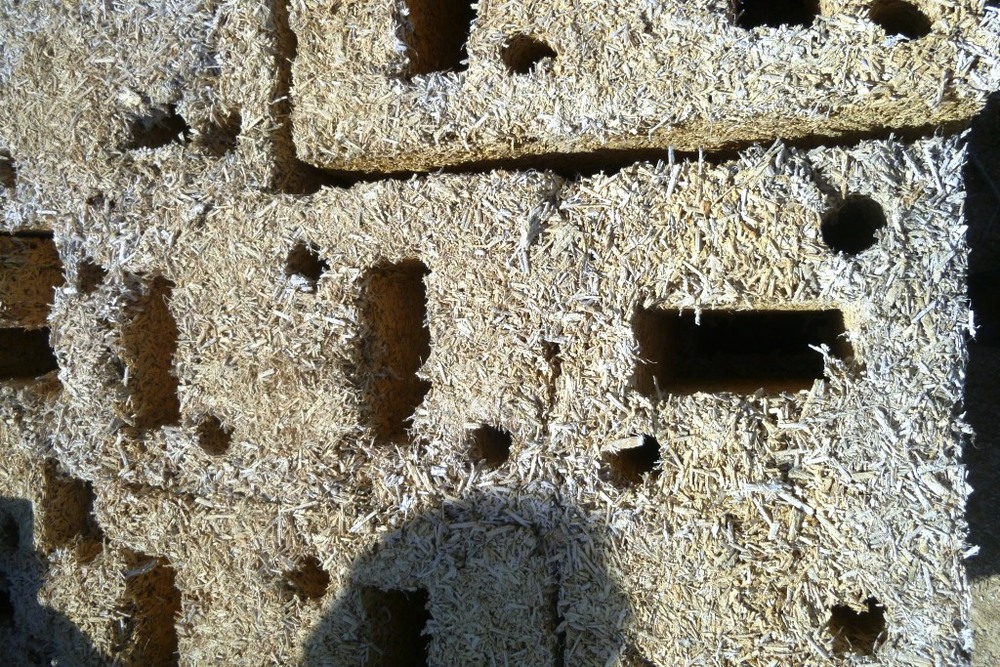 Uno dei bio-mattoni con cui è stata realizzata la cantina