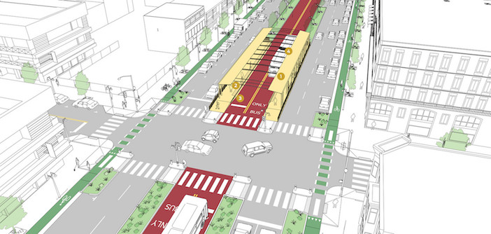 È un intervento inoltre semplice da replicare sia nelle strade più piccole che in quelle più grandi, dove il traffico è misto e le corsie riservate ai bus e quelle riservate alle auto non sono necessariamente separate da barriere. Partendo dal presupposto che sui marciapiedi troppo stretti le fermate non dovrebbero essere realizzate, NACTO sostiene che per evitare che le auto invadano la corsia degli autobus o che sostino, come spesso accade, nelle aree delle fermate, sarebbe utile utilizzare una segnaletica dai colori sgargianti. È vero che attualmente le strisce del bus sono evidenziate ma bisognerebbe calcare un po’ la mano rendendole più che visibili.