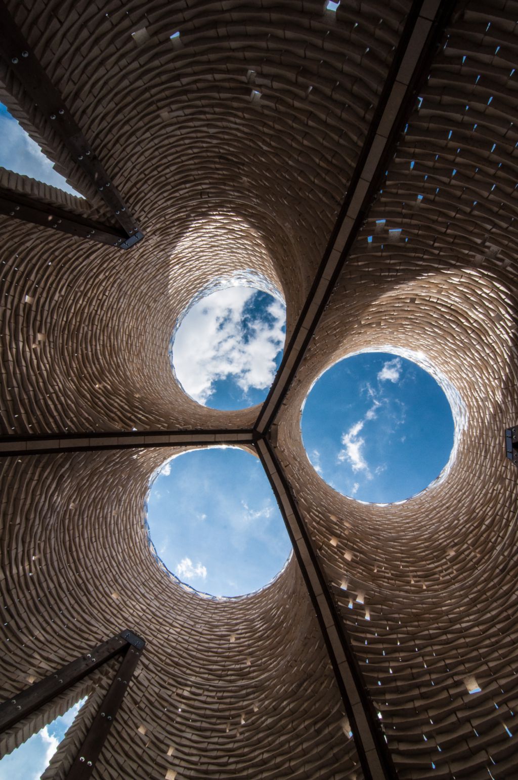ZERO CONSUMI. Durante la costruzione, i mattoni non sono posti uno accanto all’altro ma viene lasciato dello spazio in modo da permettere la naturale circolazione dell’aria. Grazie al così detto “effetto camino”, l’aerazione viene garantita dallo spostamento delle masse fredde verso il basso e di quelle calde verso l’alto, che escono attraverso il comignolo di cui l’edificio è dotato. In questo modo il consumo d’energia e le emissioni di carbonio sono ridotte a zero. Quando l’edificio sarà smantellato i mattoni biologici potranno essere naturalmente smaltiti in qualsiasi terreno agricolo.