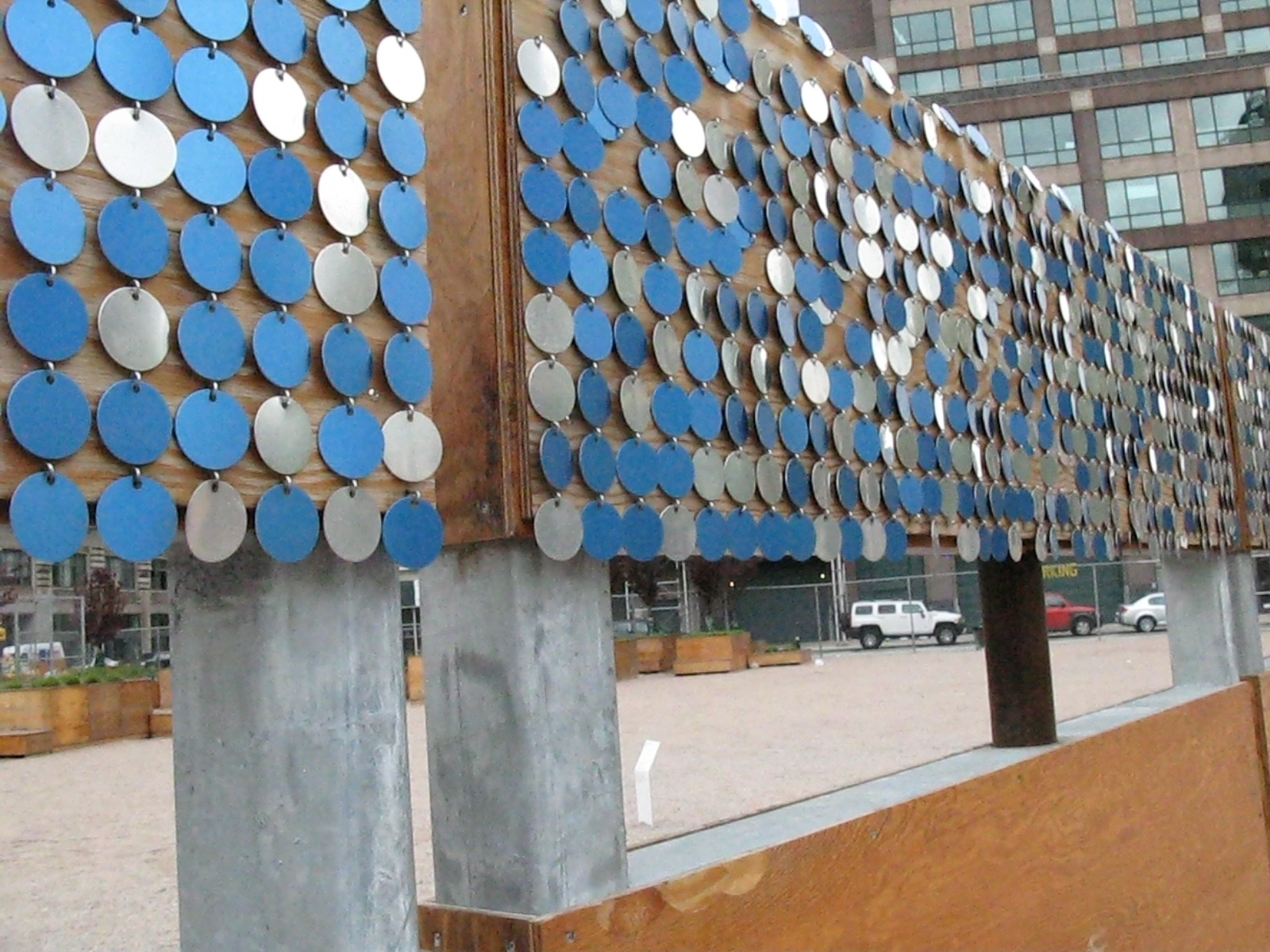 MATERIALI POVERI PER LUOGHI AL SERVIZIO DI TUTTI. Il giardino è stato volutamente realizzato con materiali poveri e riciclabili. Lo spazio è racchiuso da pannelli mobili in compensato marino montati su telai di acciaio e decorati con dischi di acciaio che riflettono la luce. Questa recinzione può assumere varie funzioni: è pensata come luogo di riposo e d’incontro, ma anche come spazio espositivo. In tutta l’area si trovano poi grandi fioriere. Al loro interno sono state piantati arbusti che, una volta cresciuti, saranno trapiantati in altre aree della città. Lo scopo di LentSpace è quello di dimostrare come sia possibile recuperare luoghi abbandonati a causa della crisi e reinventarli, utilizzando materiali economici e facendoli diventare luoghi davvero utili per la comunità.