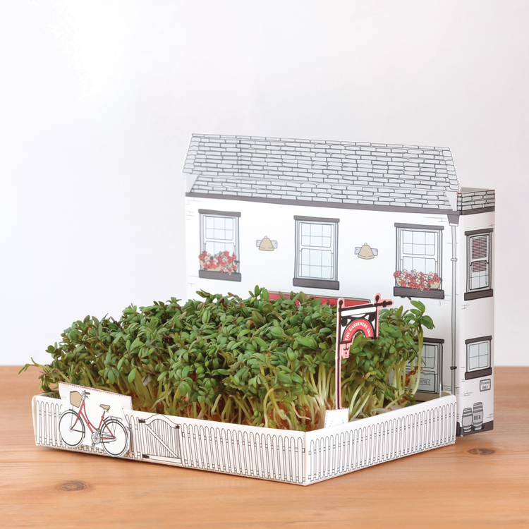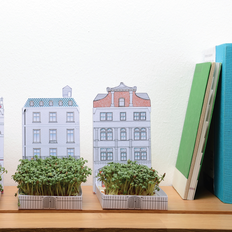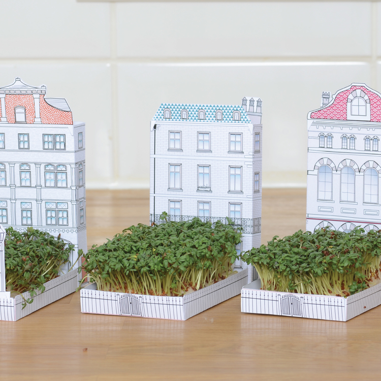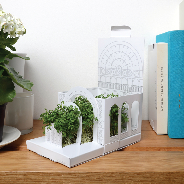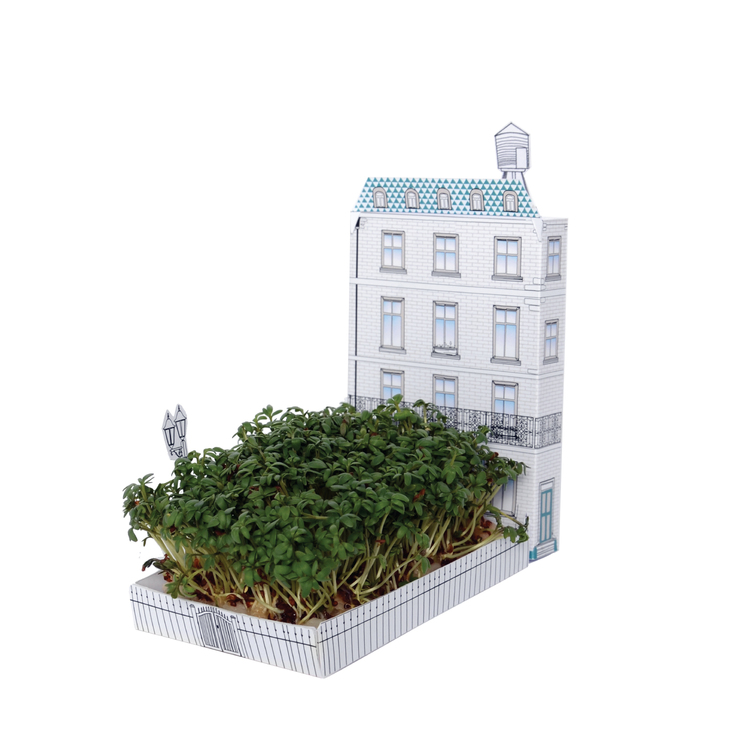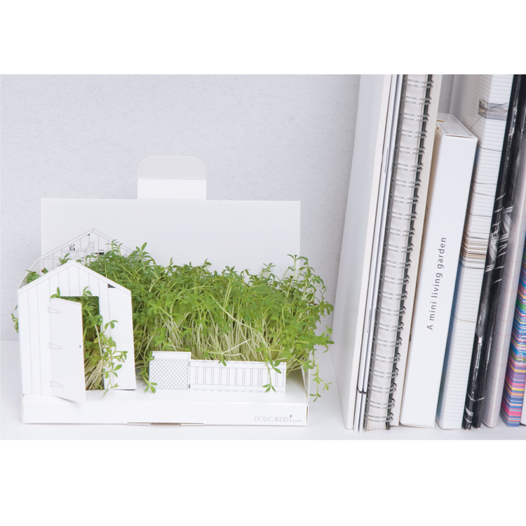 L’ORTO DA SALOTTO. Una volta finita la composizione, tempo un paio di giorni e avremo sulla nostra scrivania un piccolo diorama con un giardino vero in costante crescita. I progettisti hanno inoltre pensato che le piantine utilizzate per questa composizione dovessero essere commestibili, in modo da poter usare la postcarden anche come un orto da salotto. L’idea delle cartoline verdi, ormai sul mercato da qualche anno, ha avuto un tale successo che i suoi inventori hanno aumentato costantemente il numero delle vedute disponibili.