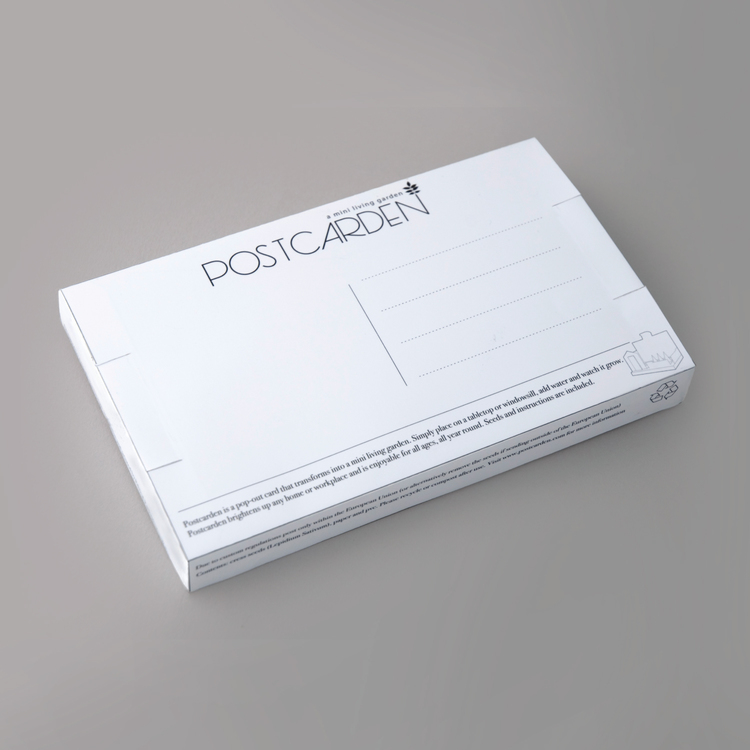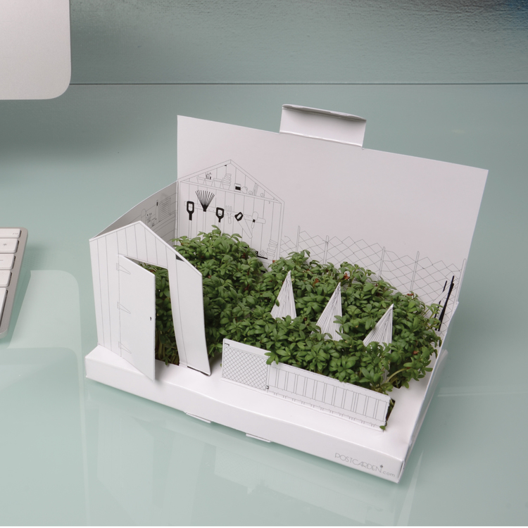 UN AUGURIO GREEN. Si chiamano postcarden le nuove cartoline ideate dallo studio Another che ha avuto l’idea di riprendere un oggetto ormai quasi dimenticato e trasformarlo in un giardino in minatura. Nella pratica la cartolina è molto simile a quella tradizionale: viene comprata, affrancata e poi spedita. Giusto appena un po’ più spessa e pesante del normale. Al suo interno si trova però un vero e proprio mini-giardino da montare e seminare. La parte cartacea rappresenta una veduta bidimensionale, che può rappresentare ad esempio una classica casa londinese, ma anche una baita montana o la cattedrale di Notre Dame. La parte tridimensionale invece è costituita da una vaschetta da riempire di terra e semi.