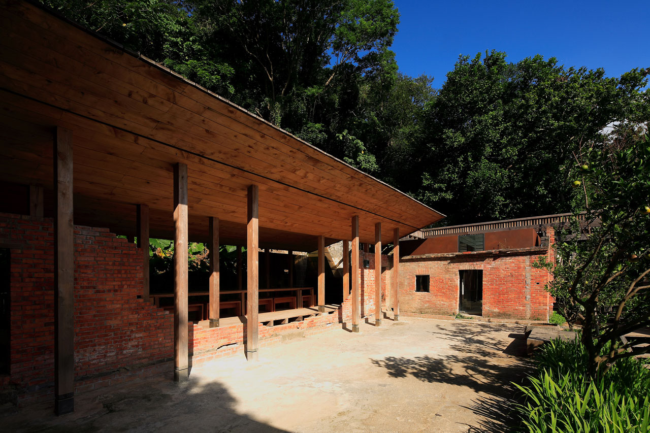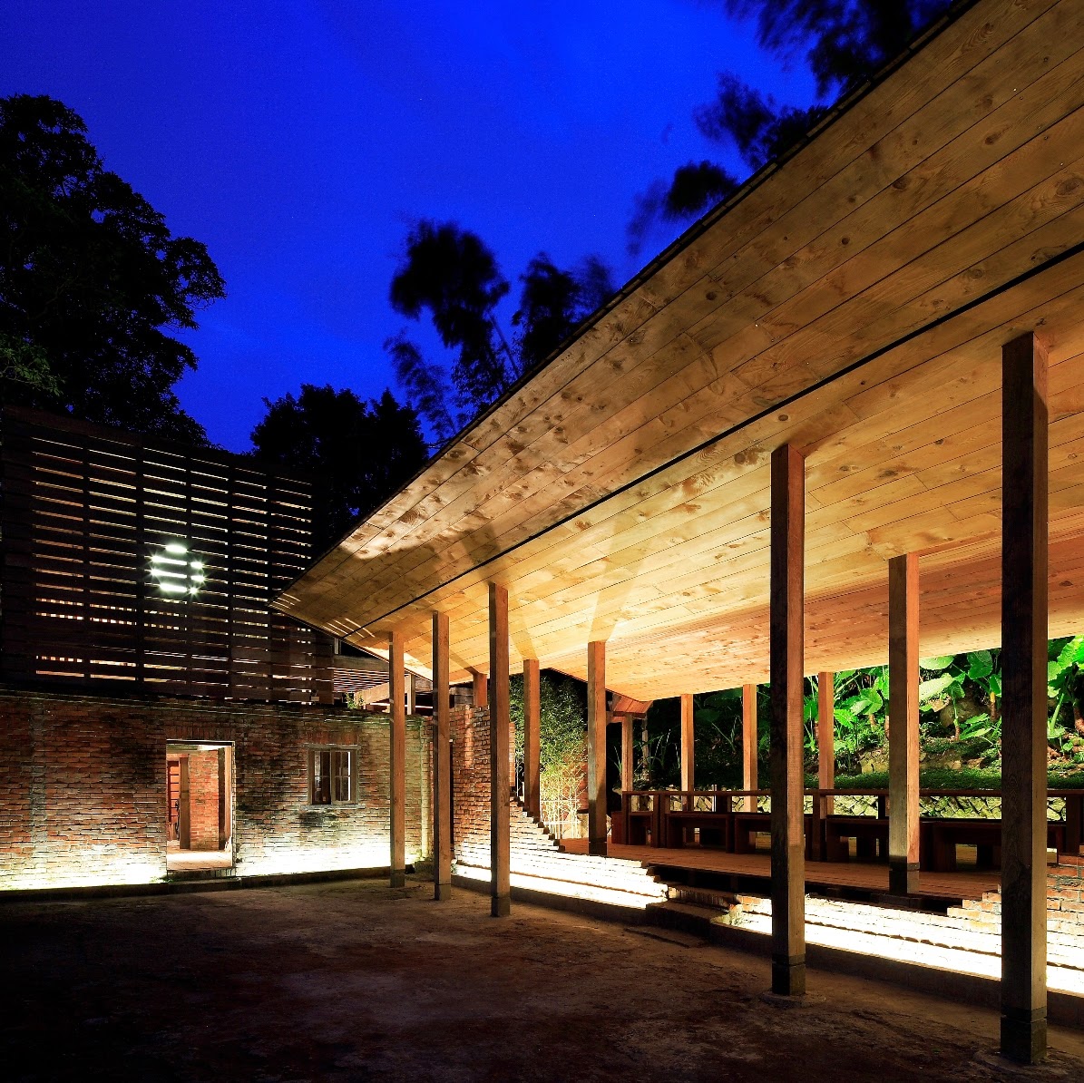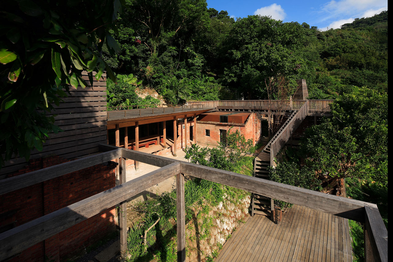 MATERIALI LOCALI E ATTENZIONE AGLI SPAZI. Ultra-Ruin si appoggia sul rudere di una cascina abbandonata e si sviluppa in un’area agricola terrazzata di circa 520mq. Le vecchie pareti in mattoni sono state recuperate e integrate con legno provenienti da piante locali, in prevalenza acacia e cipresso. Il materiale è stato scelto perché di facile reperimento e perché, a differenza dei mattoni, favorisce l’aerazione in un clima molto umido come quello di Taiwan. Per garantire la circolazione dell’aria sono dunque stati costruiti pergolati e brise-soleil. Marco Casagrande definisce il suo lavoro non solo architettonico ma come “accadimento organico”: gli spazi si organizzano in base a ciò che già esiste e i materiali locali vengono trasportati a mano senza la realizzazione di nuove strade che deturperebbero l’ambiente.