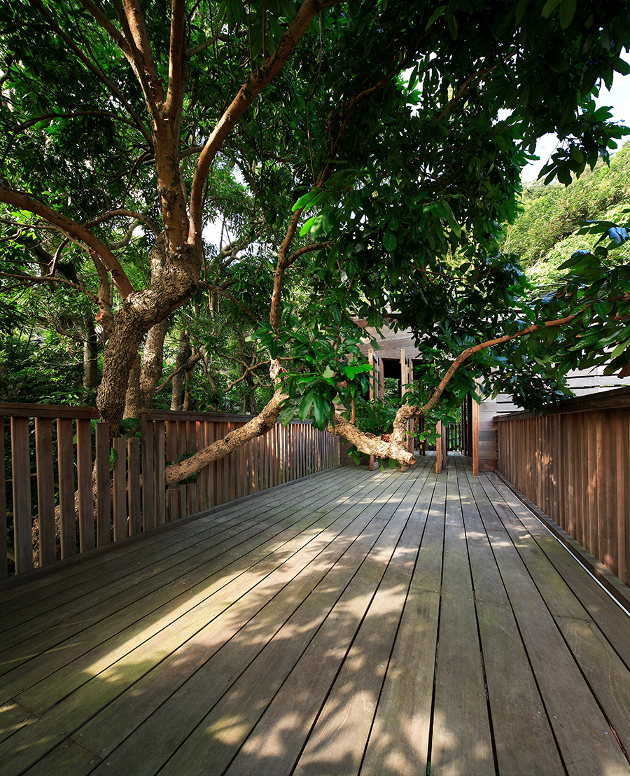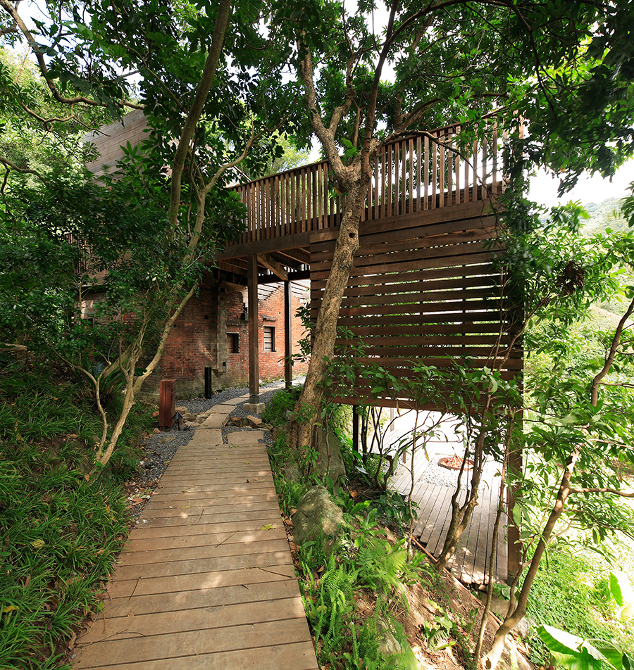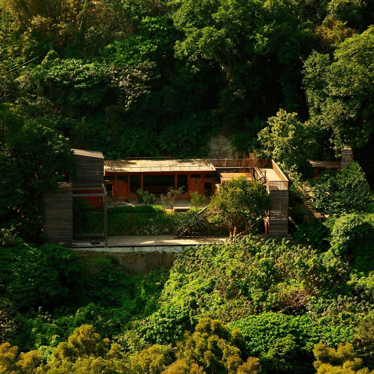 MATERIALI LOCALI E ATTENZIONE AGLI SPAZI. Ultra-Ruin si appoggia sul rudere di una cascina abbandonata e si sviluppa in un’area agricola terrazzata di circa 520mq. Le vecchie pareti in mattoni sono state recuperate e integrate con legno provenienti da piante locali, in prevalenza acacia e cipresso. Il materiale è stato scelto perché di facile reperimento e perché, a differenza dei mattoni, favorisce l’aerazione in un clima molto umido come quello di Taiwan. Per garantire la circolazione dell’aria sono dunque stati costruiti pergolati e brise-soleil. Marco Casagrande definisce il suo lavoro non solo architettonico ma come “accadimento organico”: gli spazi si organizzano in base a ciò che già esiste e i materiali locali vengono trasportati a mano senza la realizzazione di nuove strade che deturperebbero l’ambiente.